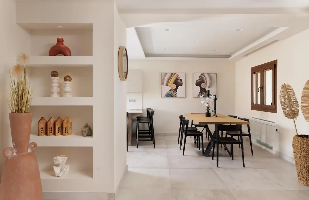 Вілла оснащена зручностями для самостійного приготування їжі, включаючи повністю обладнану кухню та обідню зону і їдальню на відкритому повітрі, де гості можуть насолодитися сніданком. До послуг гостей також мікрохвильова піч, електрочайник і холодильник, а також кавоварка. Також є автовокзал Doukades, розташований лише за 0.8 км.